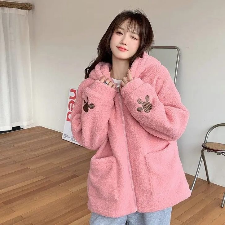 Jaket Wanita Cute Bear Sherpa Bahan Premium Tebal Jacket Sherpa Distro Wanita Best Seller Termurah Fashion Girls