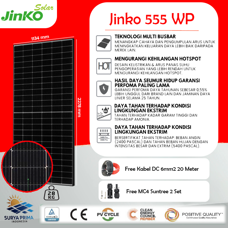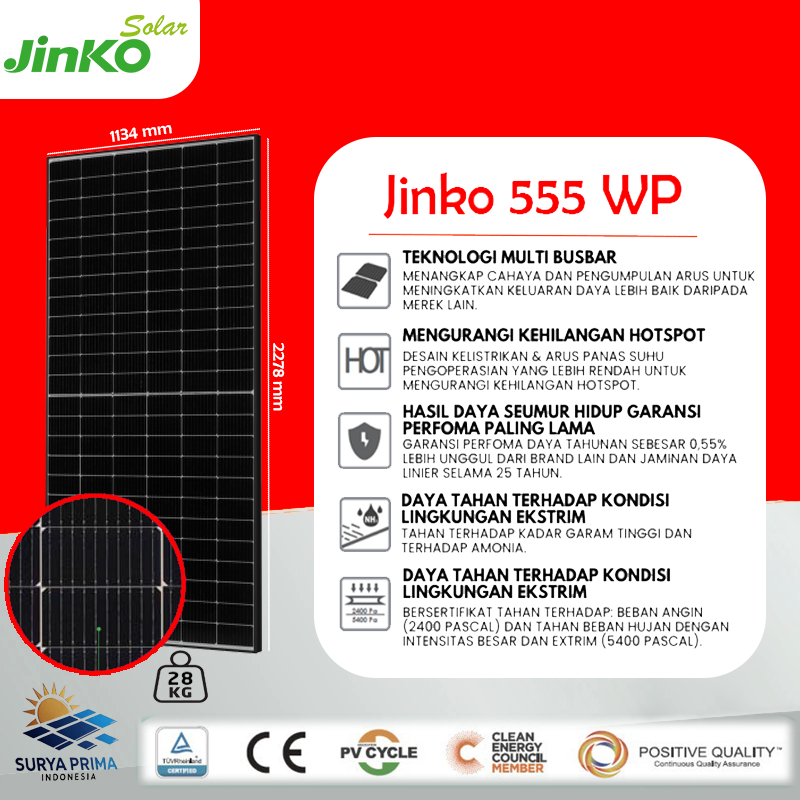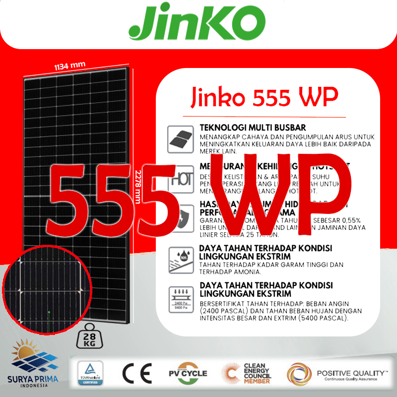 JINKO SOLAR CELL / PANEL SURYA 555WP SNI MONO TIER 1 BUKAN TRINA LONGI [SURYA PRIMA INDONESIA]