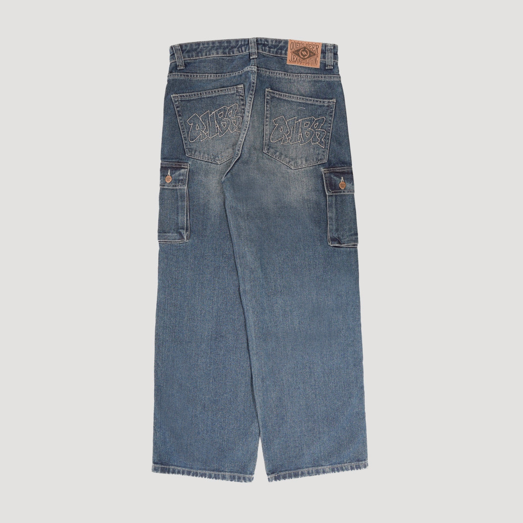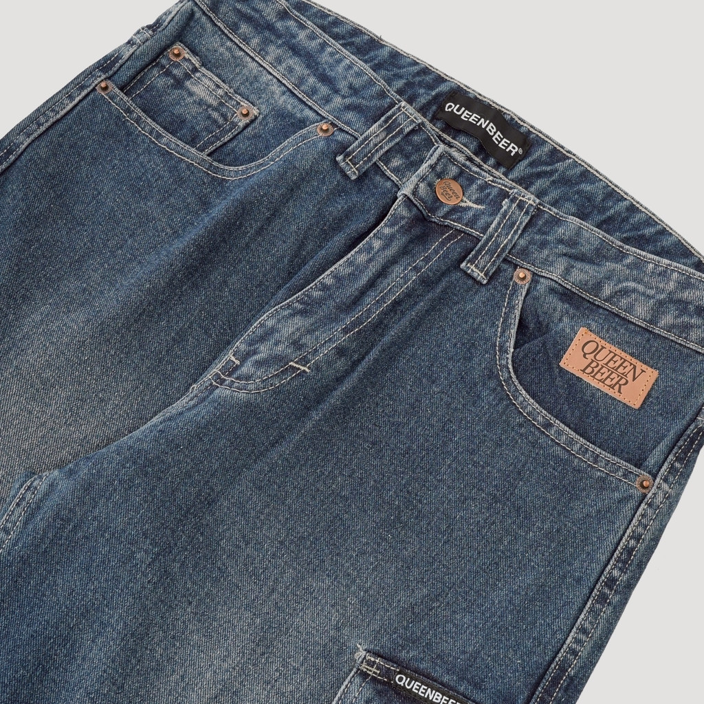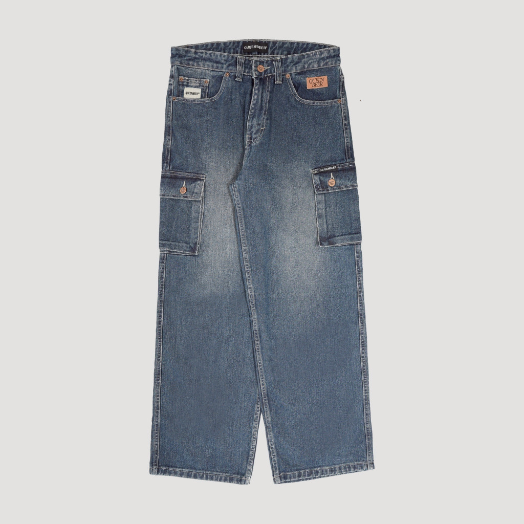 Queenbeer - Cargo Denim Pants Nelson Blue Washed