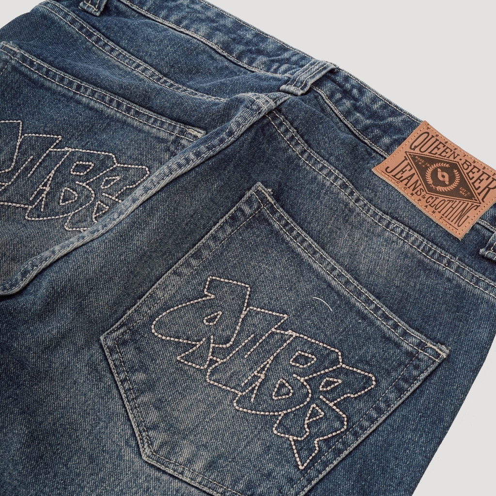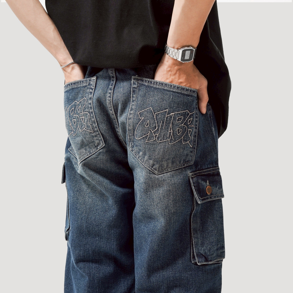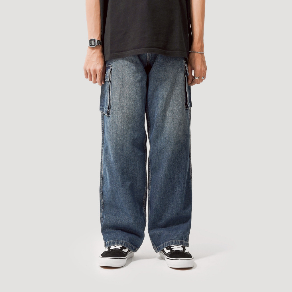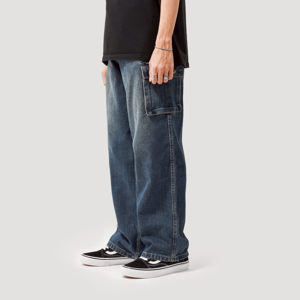 Queenbeer - Cargo Denim Pants Nelson Blue Washed