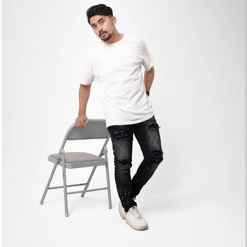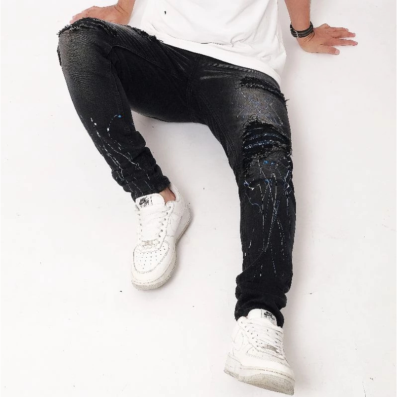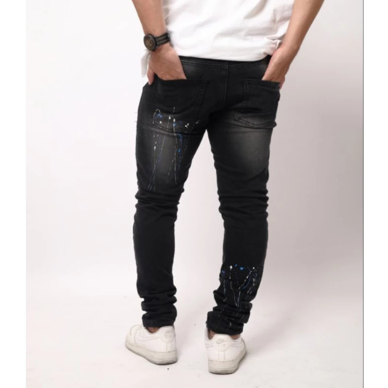 KaishawnUniqueID28 " BLACK DOFF " Celana Jeans Pria Skinny Motif Bercak