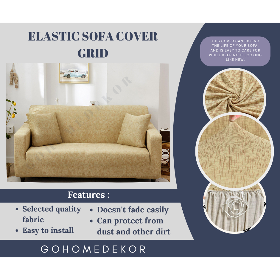 GHD ELASTIC SOFA COVER GRID / SARUNG KAIN PENUTUP SOFA ELASTIS STRETCH BERMOTIF GARIS MURAH LEMBUT
