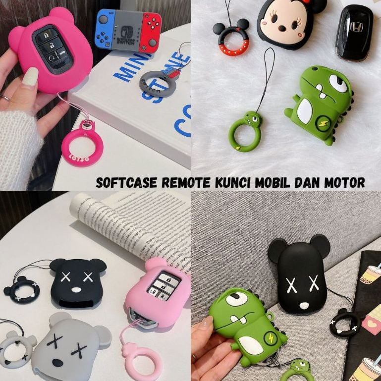 HG38 Silikon Gantungan Kunci Mobil Motor/ Cover Kunci Remote Mobil Motor Case Casing Kunci Model Lucu Motif Kartun Bisa