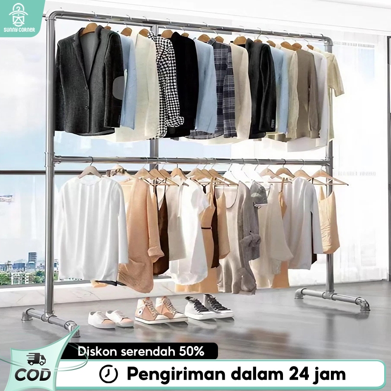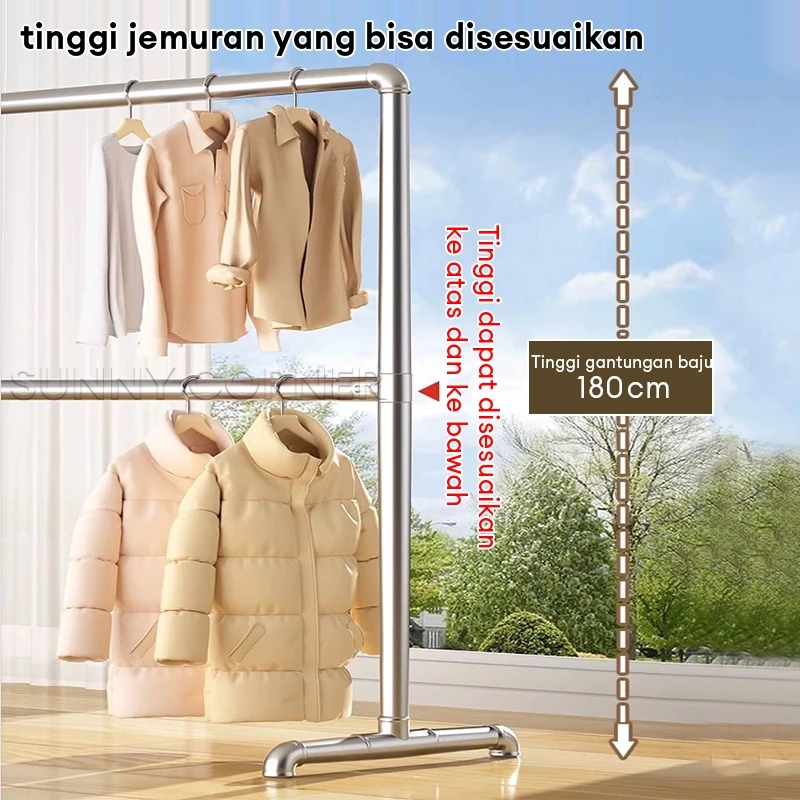[Star]Jemuran Baju Stainless 2 Susun Jemuran Pakaian 180cm Rak Gantungan Baju Stand hanger Minimalis - ghm02