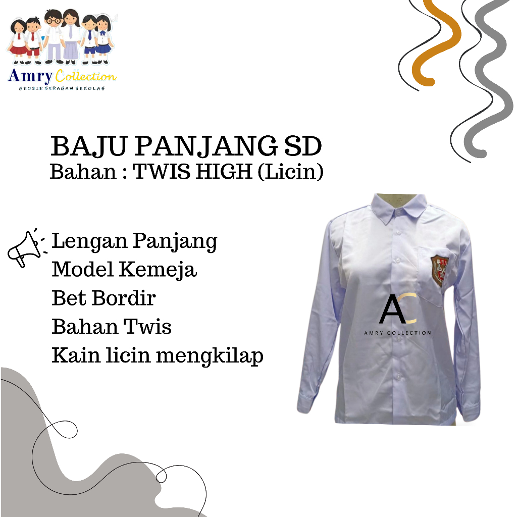 Seragam Sekolah Baju SD Lengan Panjang Putih Kemeja Panjang SD By Amrycollection (TWIST)