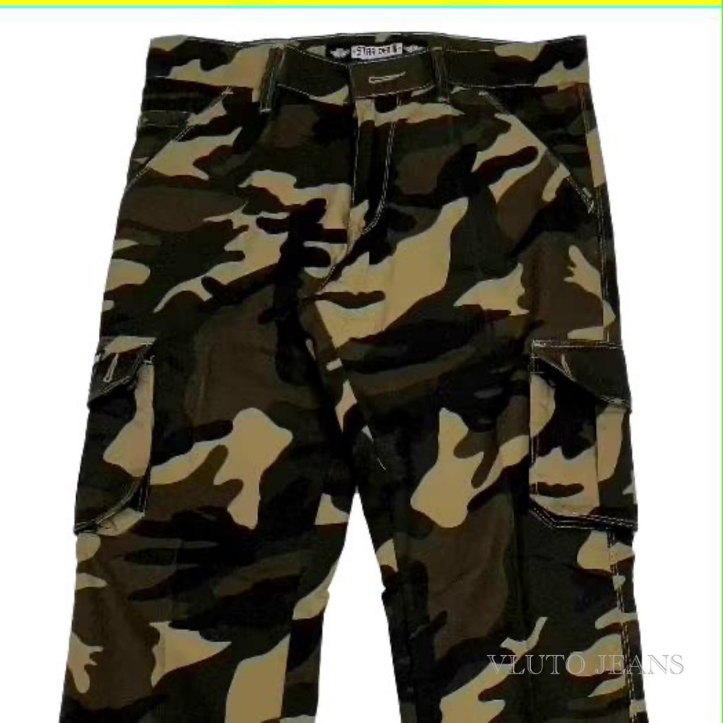 Celana Cargo Pants Loreng Pria Motif Camo Gombrong Bahan Reguler Fit Tidak Melar Size S M L XL 36 38
