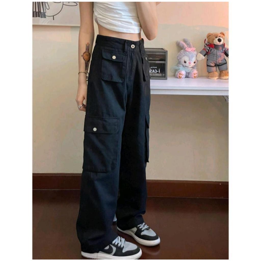 Cargo Denim Pasir Putih Highwaist Loose Celana Jeans Wanita Korea(realpict)