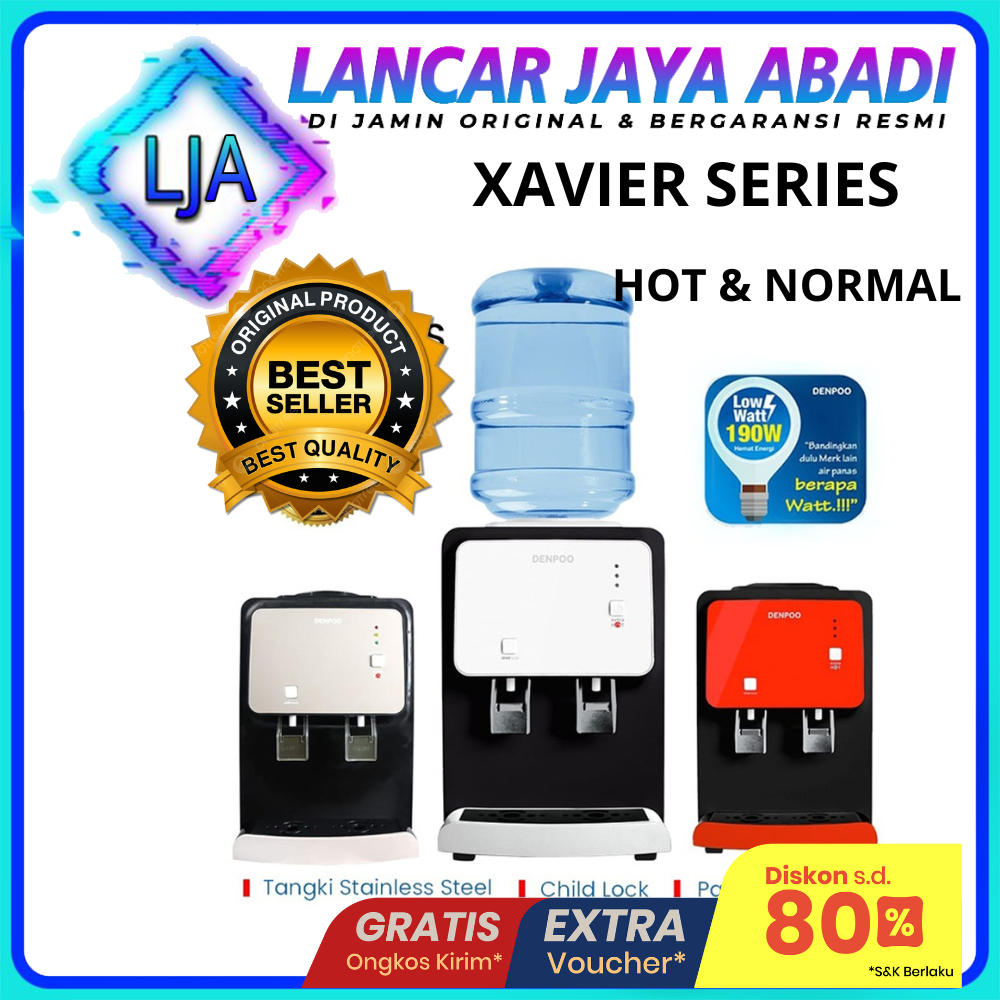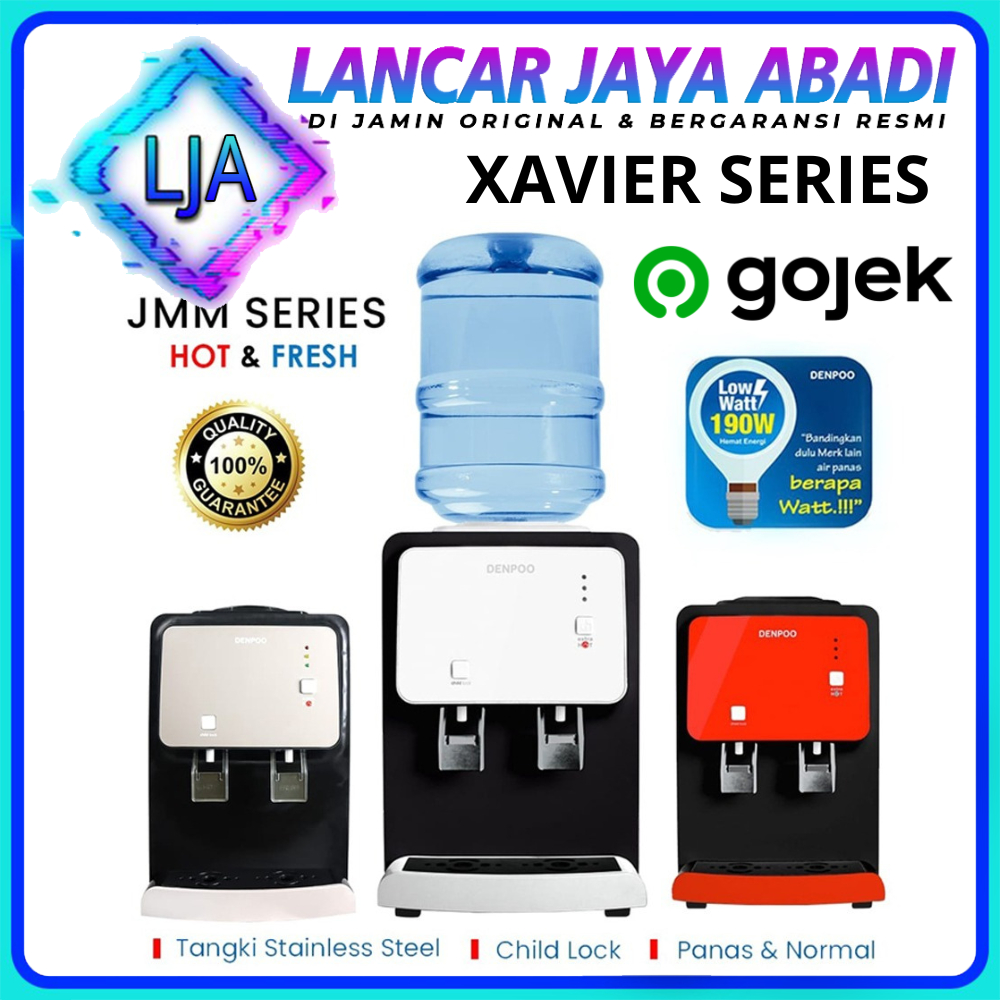 DISPENSER PORTABLE DENPOO XAVIER II HOT & FRESH DISPENSER HEMAT LISTRIK BERGARANSI RESMI