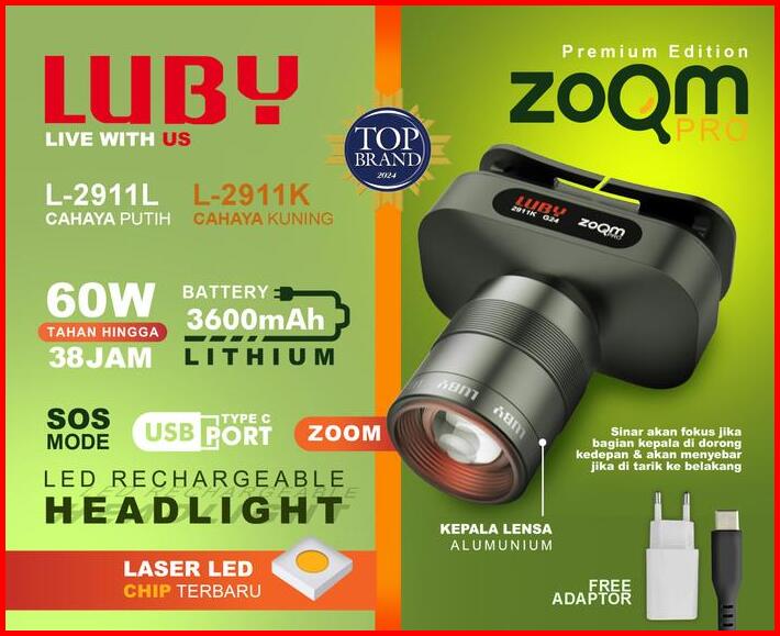 Senter Kepala Zoom Pro Luby L-2911l 60w Led Laser