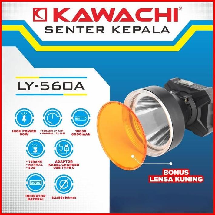 Senter Kepala Led 60watt Kawachi Ly-560a Free Lensa Kuning Dengan Indikator Baterai