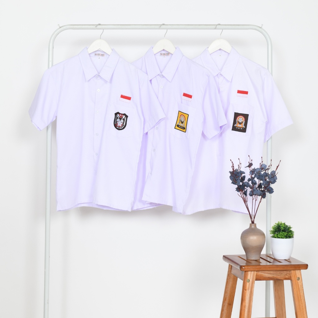 Seragam Sekolah SD MADRASAH SMP SMA SMK Kemeja Putih Baju Atasan Lengan Pendek Bet Bordir