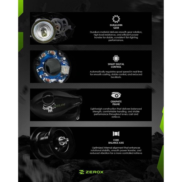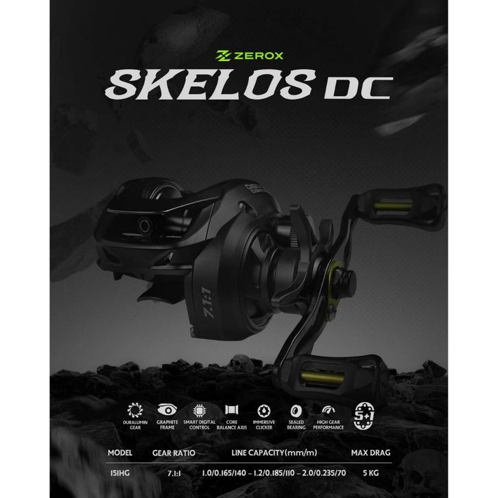 Reel Pancing BaitCasting Digital Control Zerox Skelos 151HG (Handle Kiri)