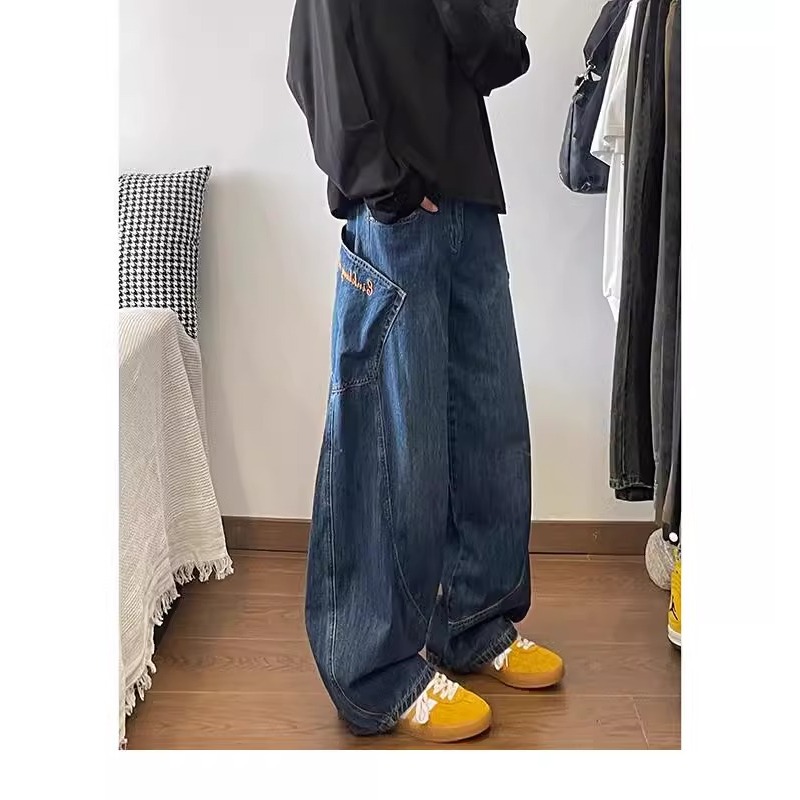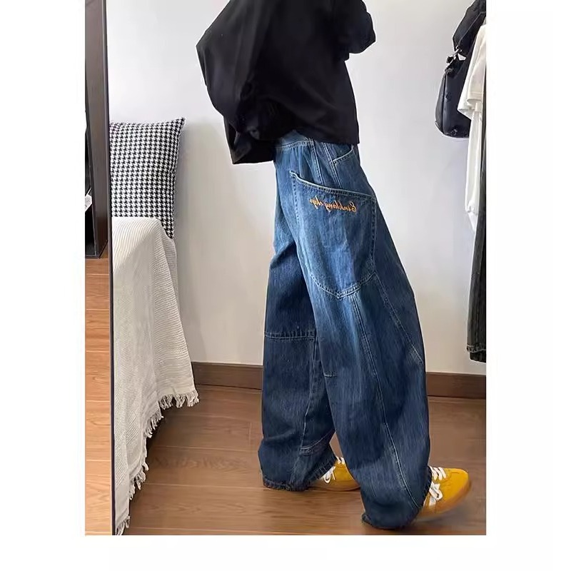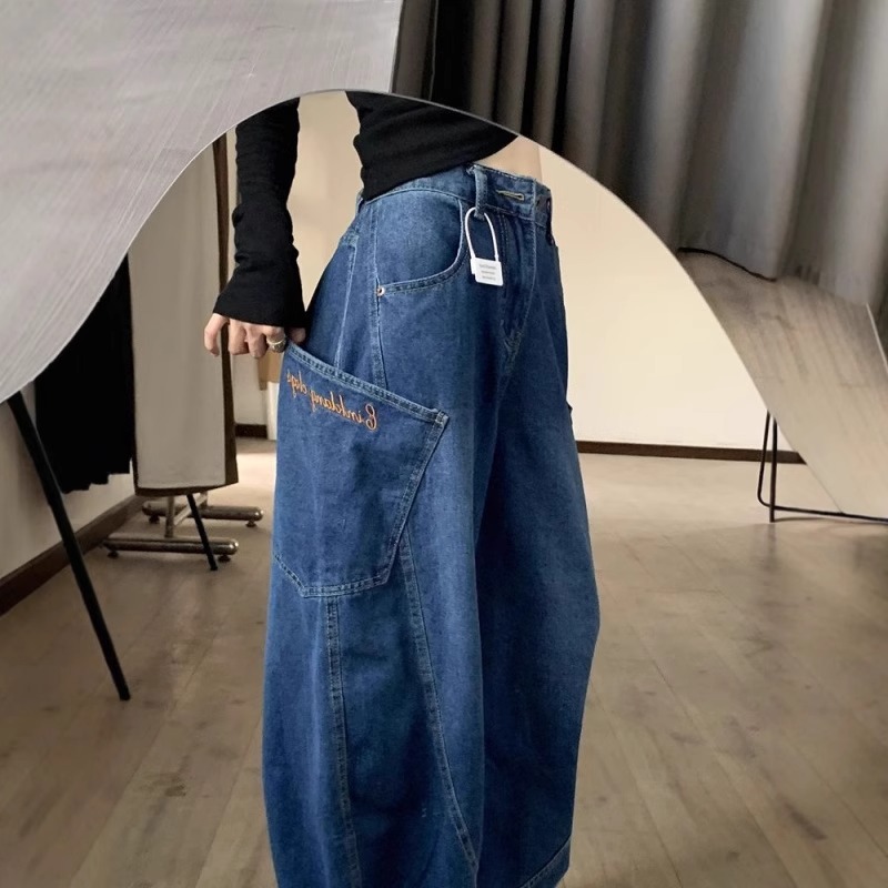 New Kulot Loose Jeans Wanita Korean Style Celana Kargo Jeans Lurus longgar Celana Panjang wanita