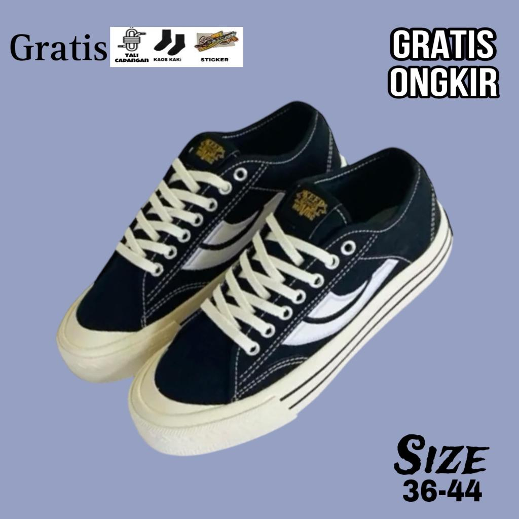 Sepatu Sneakers Pria Wanita Flexion Black White Sneaker Hitam Putih Kasual Seneakers Hitam Terbaru