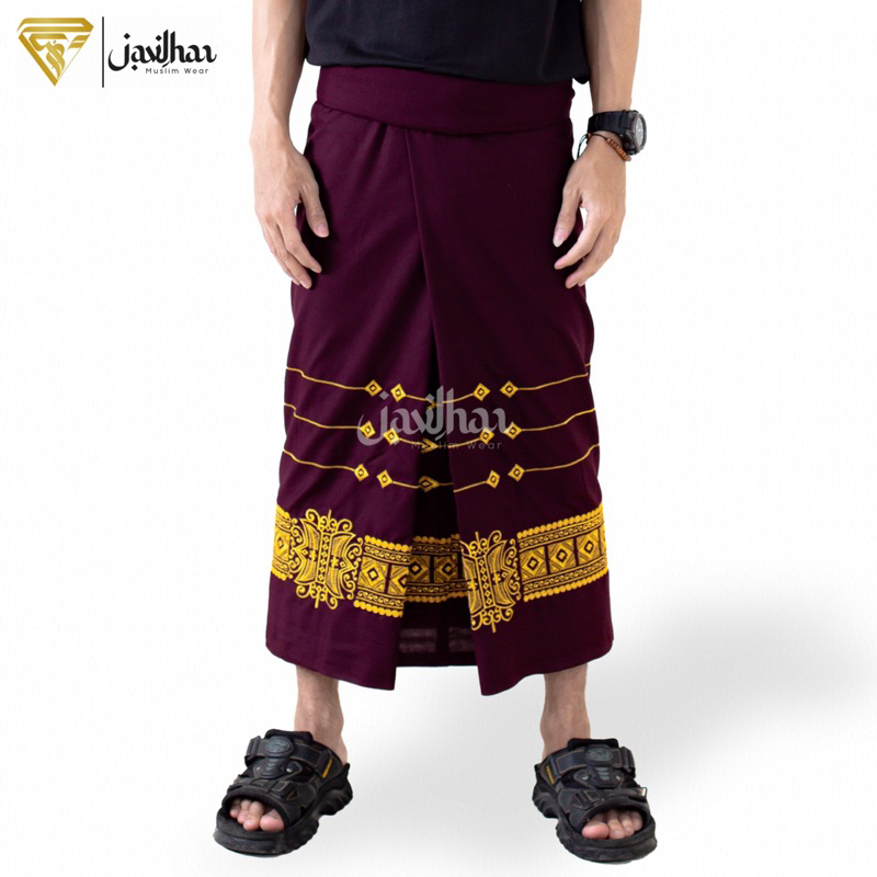 Sarung Wadimor Bordir Motif Bordir Pintu Aceh Warna Maroon