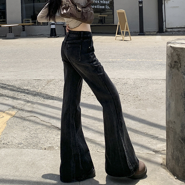 GDTIMA Celana Jeans Wanita Retro Highwaist Loose Kekinian Kaki Lebar Celana Denim
