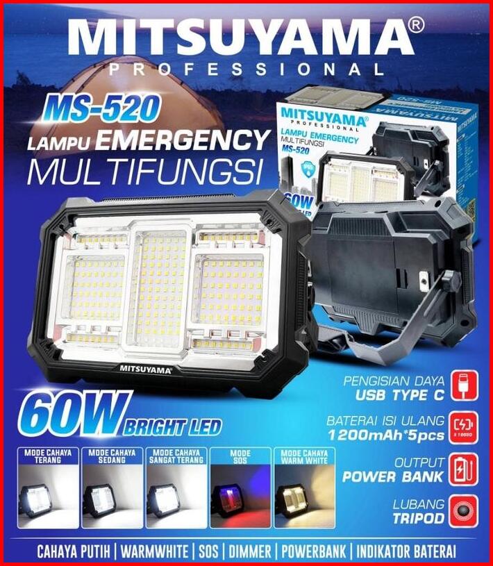 Lampu Emergency Multifungsi 60watt Mitsuyama Ms-520 Battery 6000mah