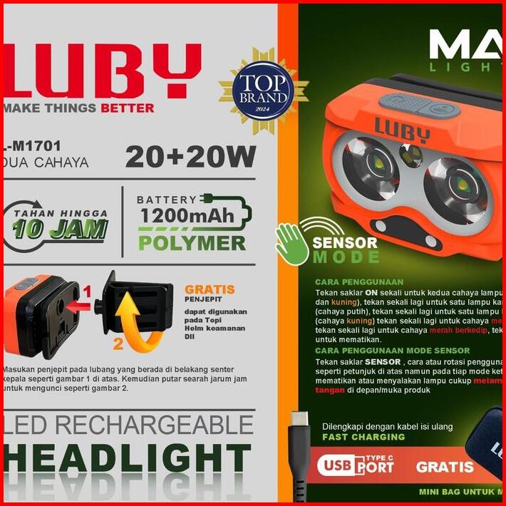 Senter Kepala Led 20watt 20watt Luby L-m1702 Battery 1200mah Tahan Hingga 10jam