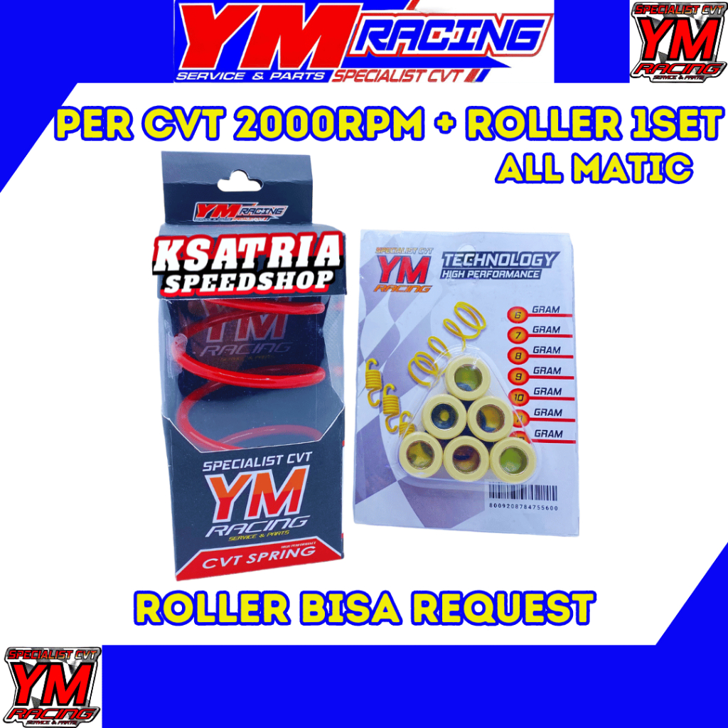 PER CVT 2000RPM + ROLLER 1SET ISI 6PCS/BUTIR YM RACING ALL MATIC (Beat/Mio/Vario/Scoopy/Genio/Nmax/Aerox/Lexi/PCX/Xride/Fino/Xeon/Spacy/Fazzio/Filano)