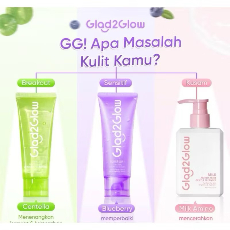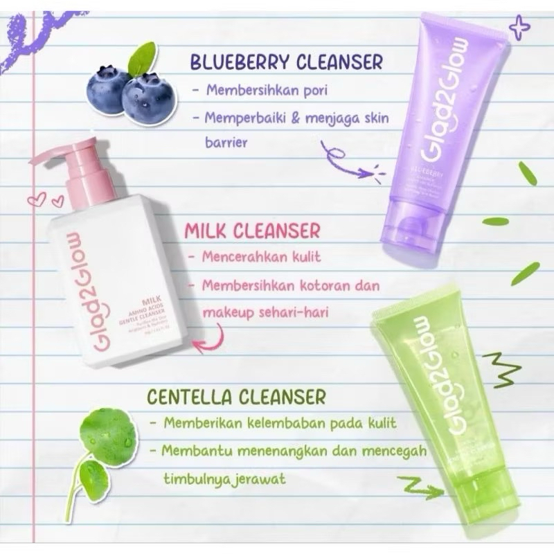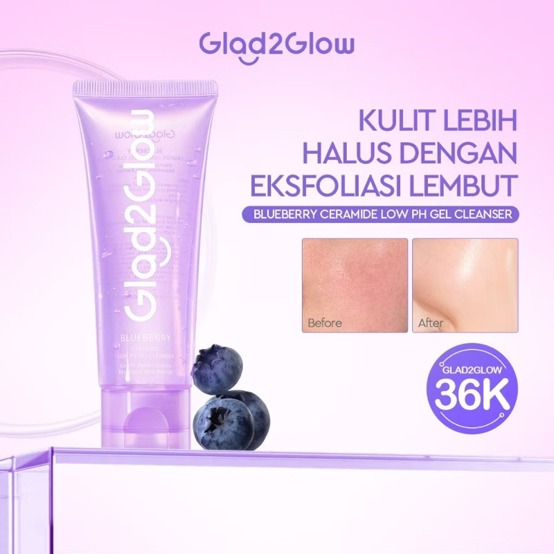GLAD2GLOW BLUEBERRY CERAMIDE LOW PH GEL CLEANSER - Oil Control Milk Amino Acid - Face Wash Acne Centella