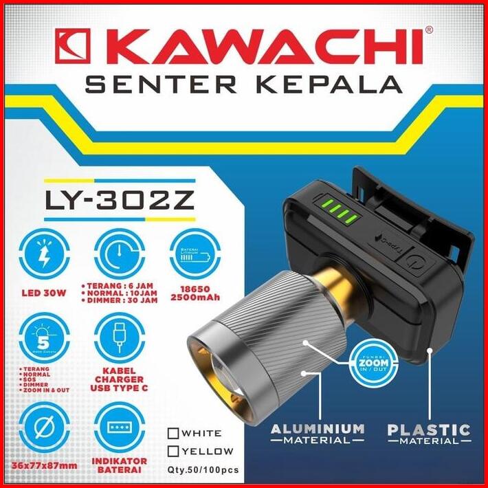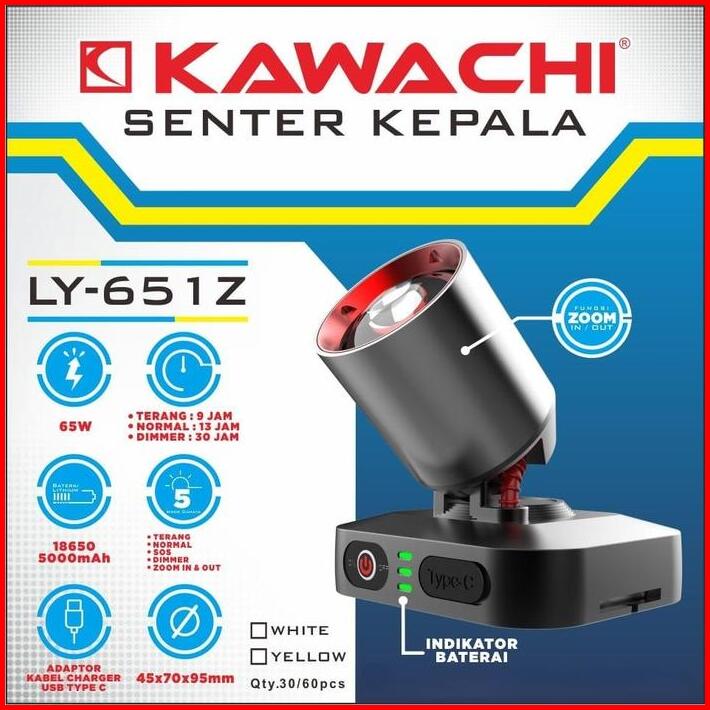 Senter Kepala 65watt Led Zoom Kawachi Ly-651z Baterai 5000mah Tahan Hingga 30jam