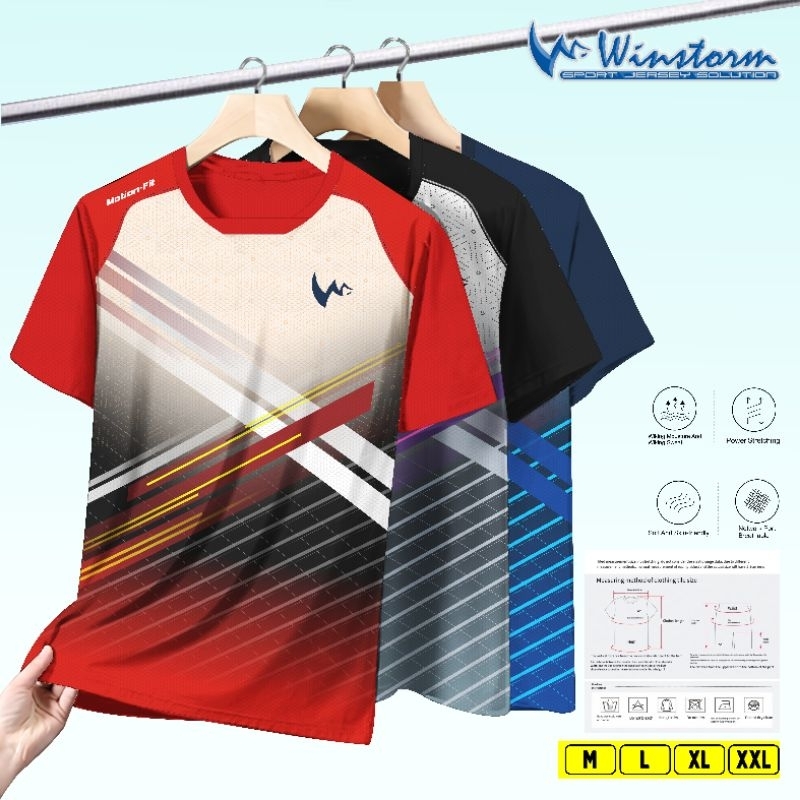 [Mall] winstorm morgan baju olahraga dewasa baju badminton kaos bulutangkis jersey voli print