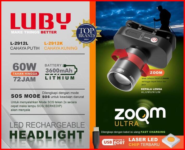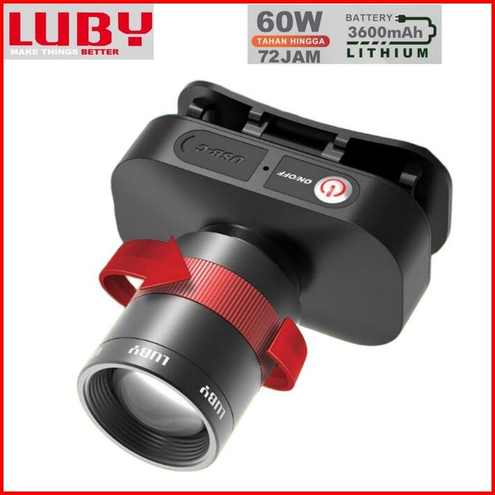 Senter Kepala Led Luby L-2912l 60watt Tahan Hingga 72jam