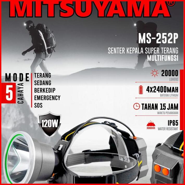 Senter Kepala Led Mitsuyama Ms-252p 120w Baterai 9600mah Dengan Mode Powerbank