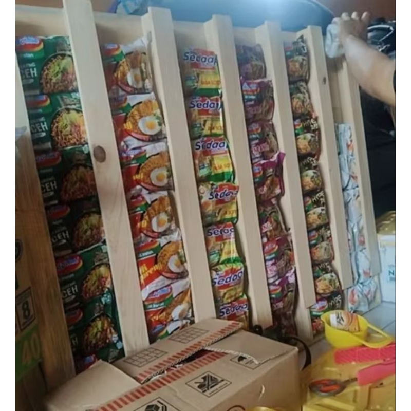Display Mie Instan / Display Warmindo / Tempat Mie Dinding / Rak Indomie / Tempat Mie 6 Slot