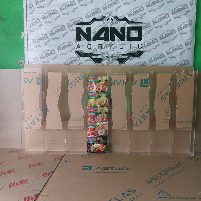 Akrilik Rak Mie 8 Kolom Bening/Putih/Hitam Tempel Dinding