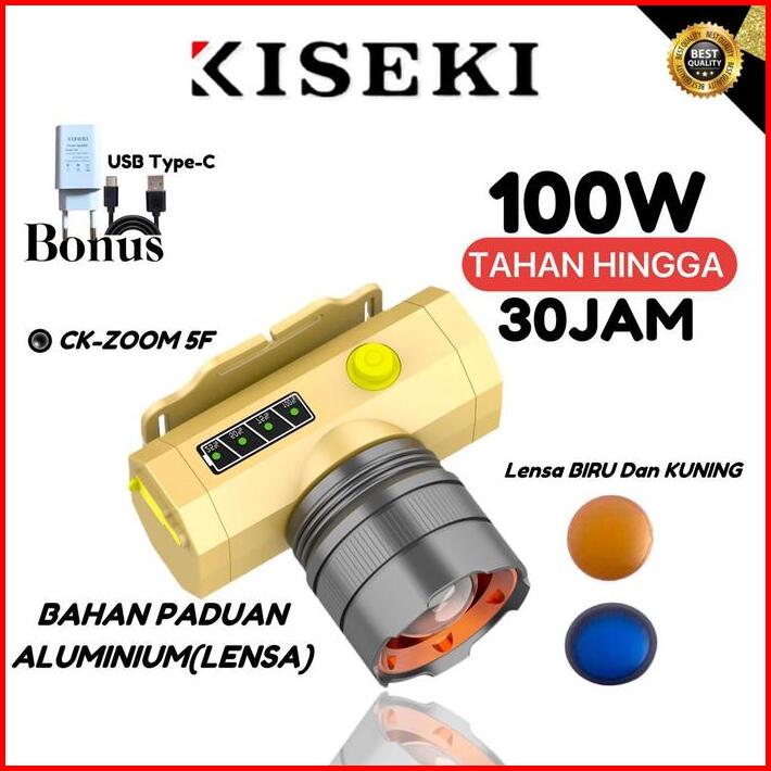 Senter Kepala Kiseki Ck-zoom 9f 100watt Baterai 6000mah Tahan 30jam
