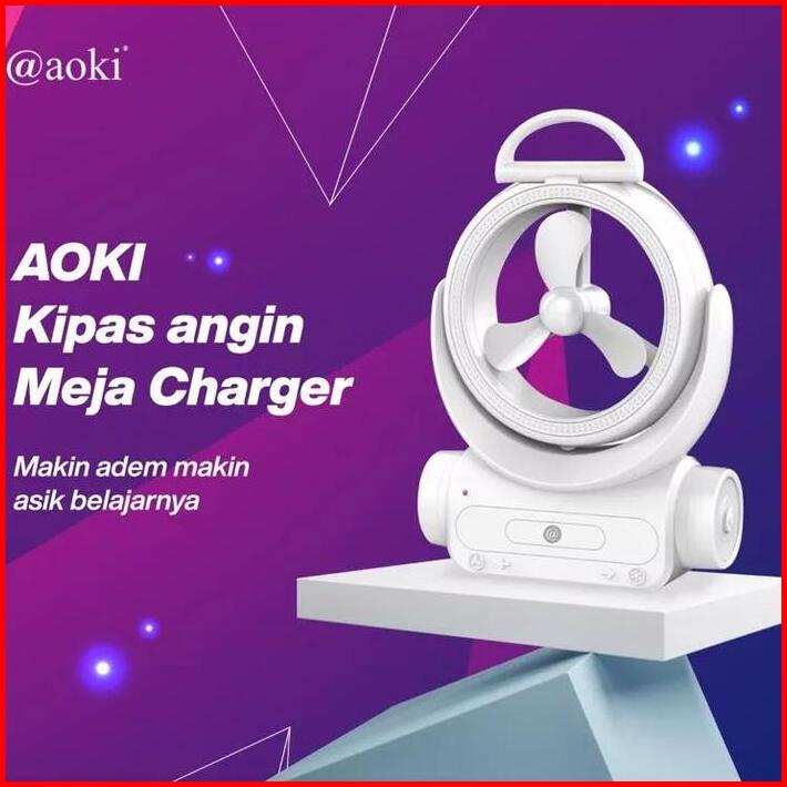 Aoki Kipas Angin Meja Charger Usb-c Dapat Dilipat Lampu Darurat 6.5inches Tahan Hingga 8jam Kipas Charger