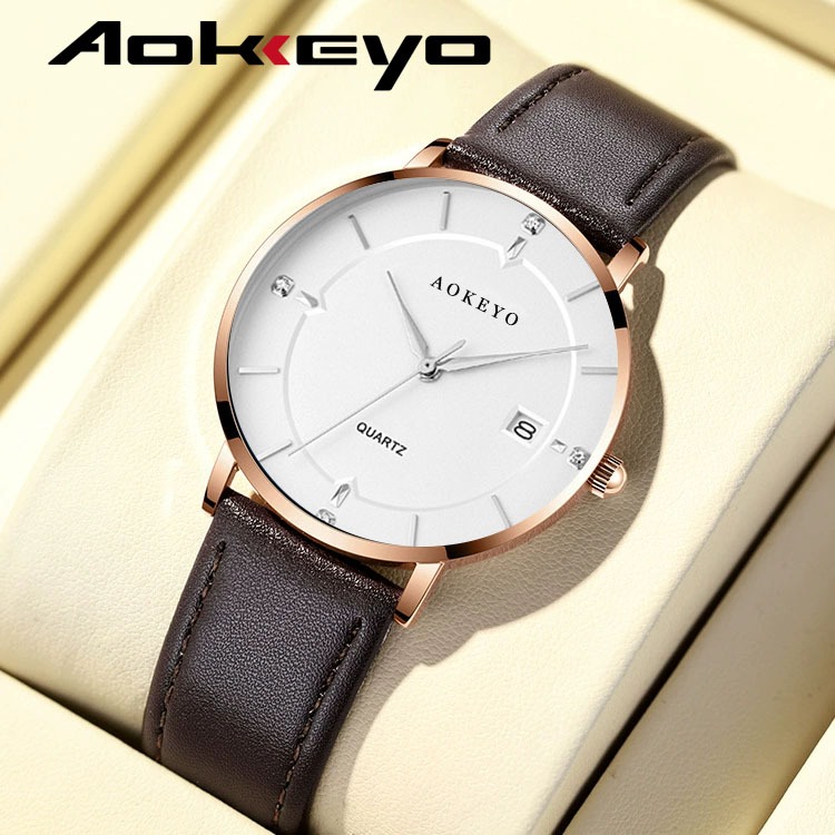 AOKEYO S79 Jam Tangan Pria Quartz Tanggal Luminous Kuarsa Mode Tali Kulit Jam Tangan Cowok