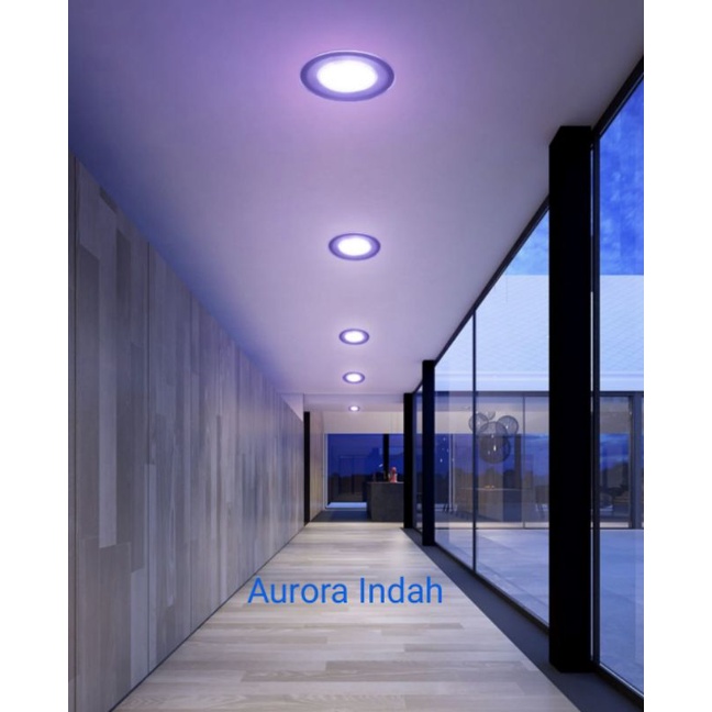 Lampu Downlight 9watt gold 3 Warna Kuning Biru Ungu (Putih+Kuning+WarmWhite)