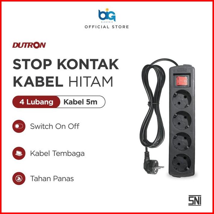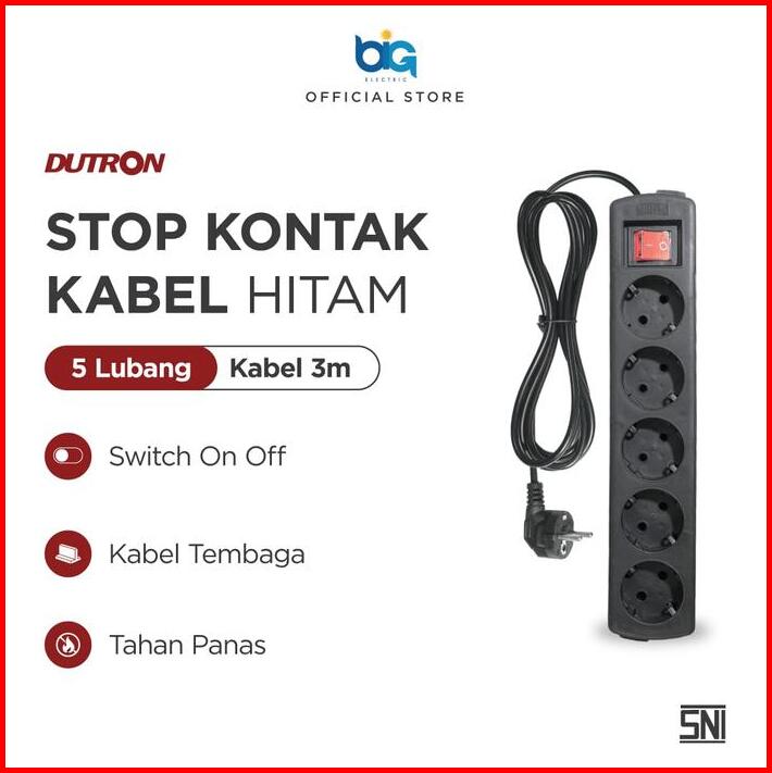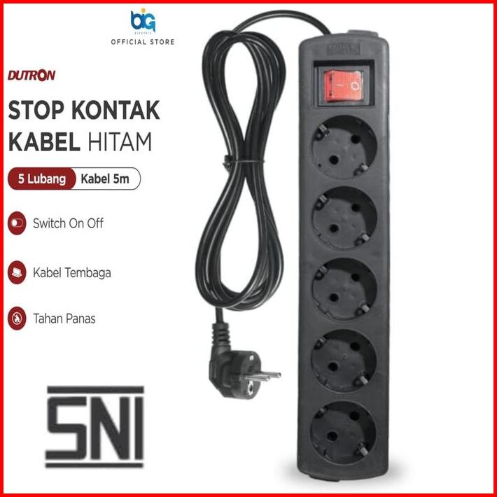 Dutron Stop Kontak Kabel Hitam 5 Lubang Kabel 5m Sni