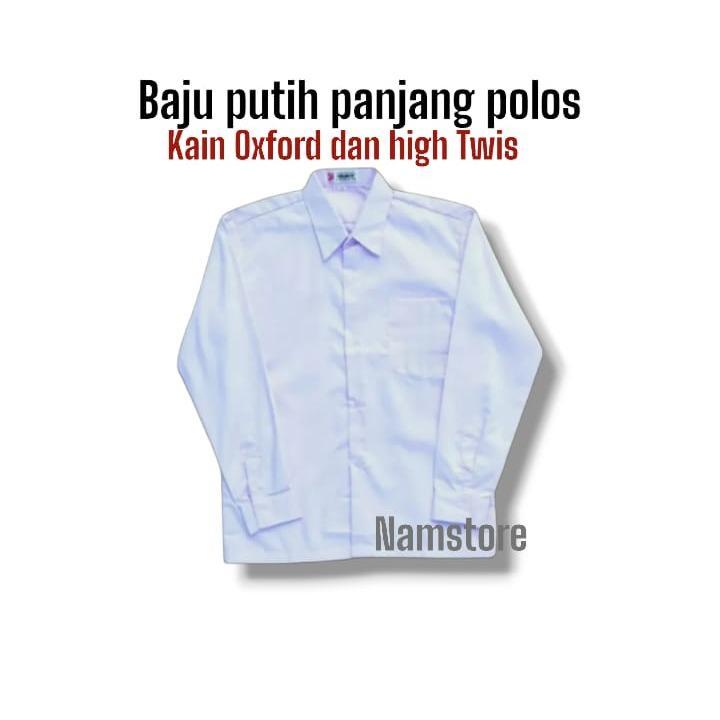 Baju Putih Lengan Panjang Polos Seragam Sekolah SD, SMP, SMA dan Madrasah Kain Oxford dan Kain Licin