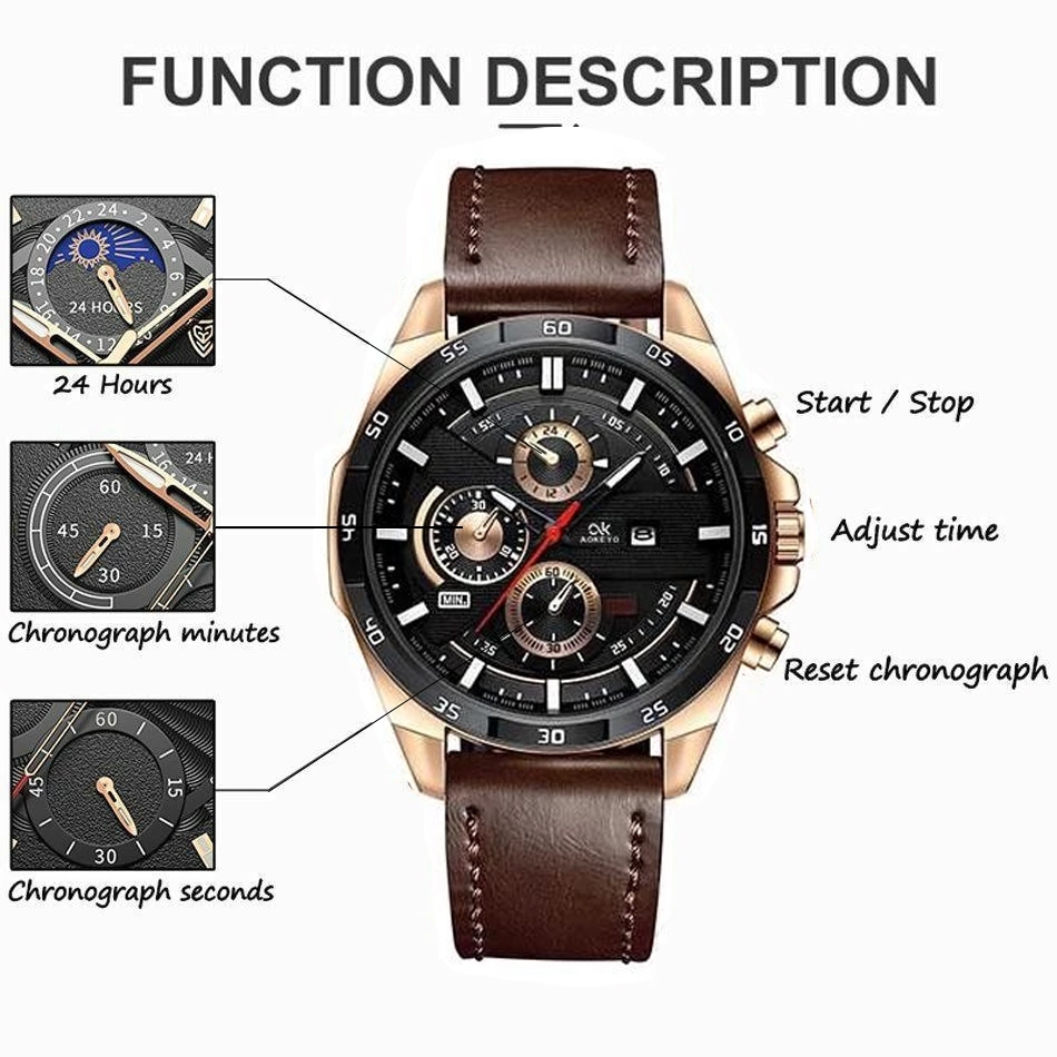 【Tahan Air 50m】AOKEYO Jam Tangan Pria Kulit 216 Jam Tangan Automatic Pria Jam Pria Anti Air Original