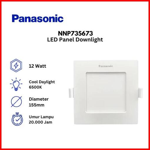 Panasonic Nnp735673 Led Panel Downlight Square Lampu Plafon 12 Watt