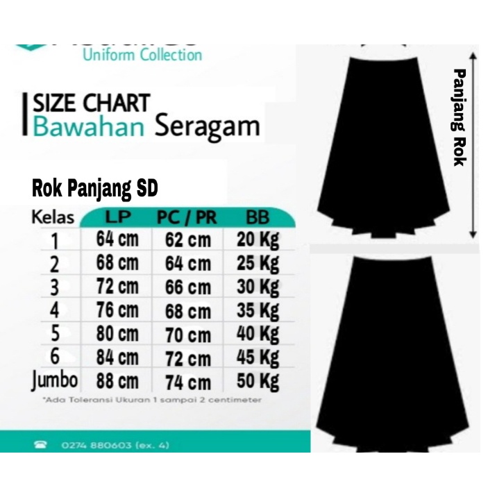 Rok Hitam panjang rempel Full Seragam sekolah SD kain twis