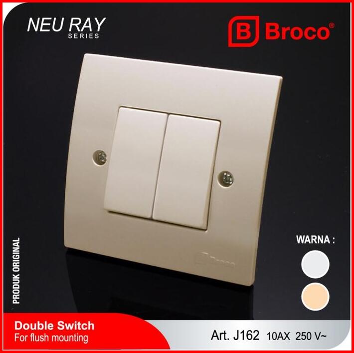 Broco Saklar Ganda Double Switch Neu Ray Saklar Lampu Dinding Switch Lampu J162