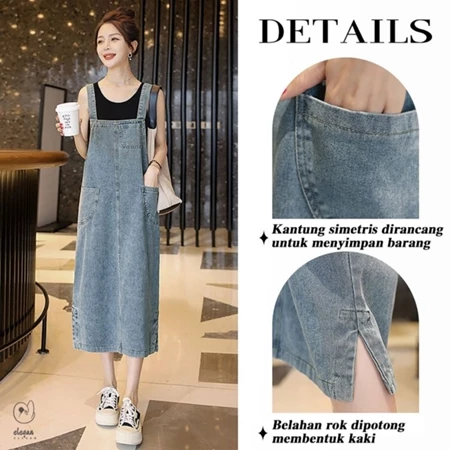 < elegan.girl > Ready stok!! overall dress vintage korea overall dress jeans rok jeans wanita panjang wanita korean styl