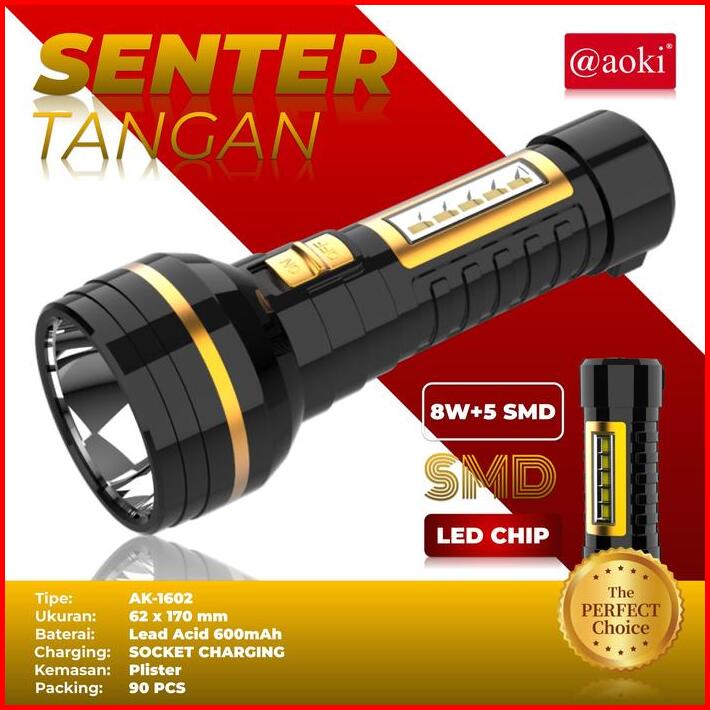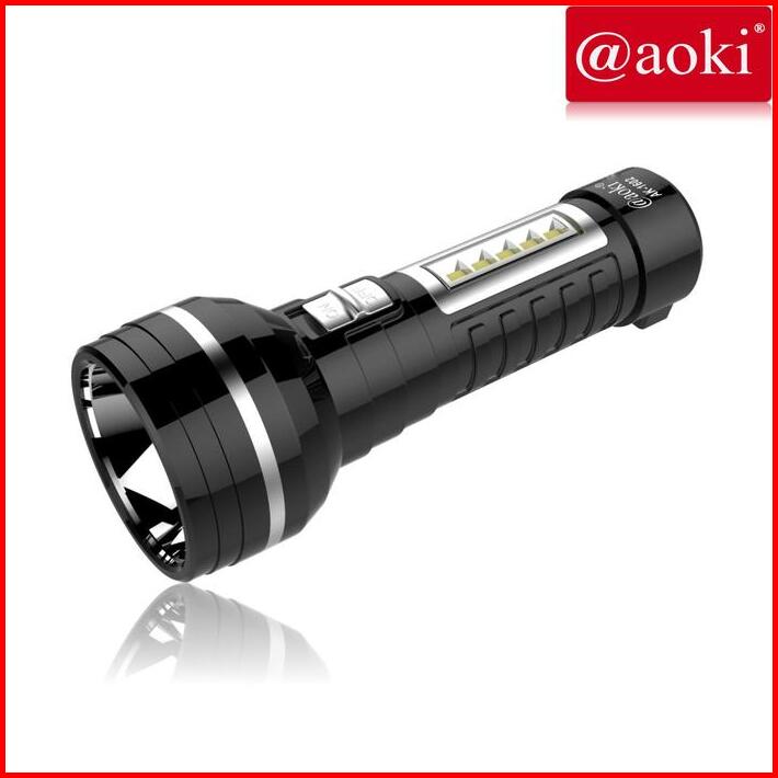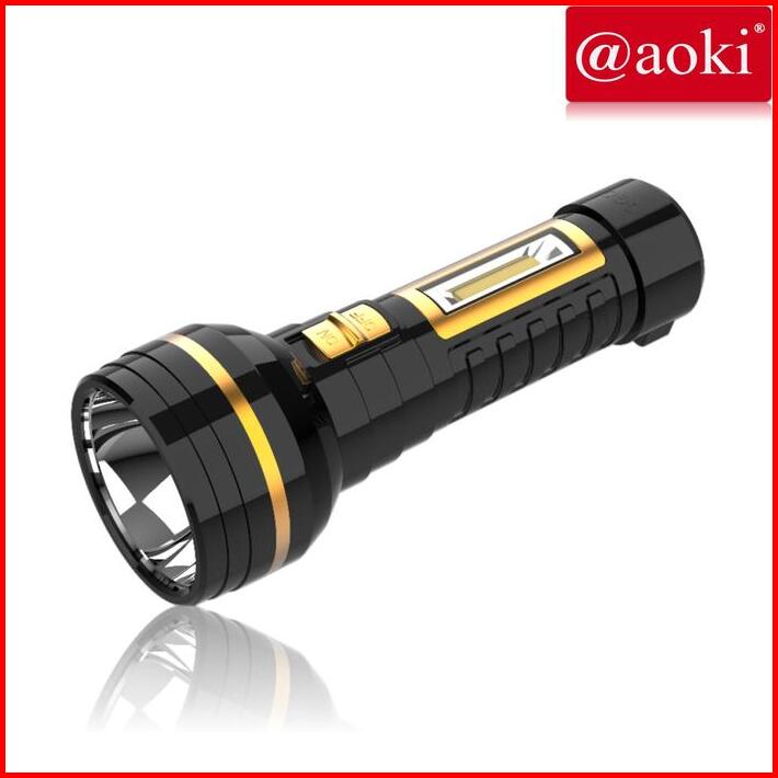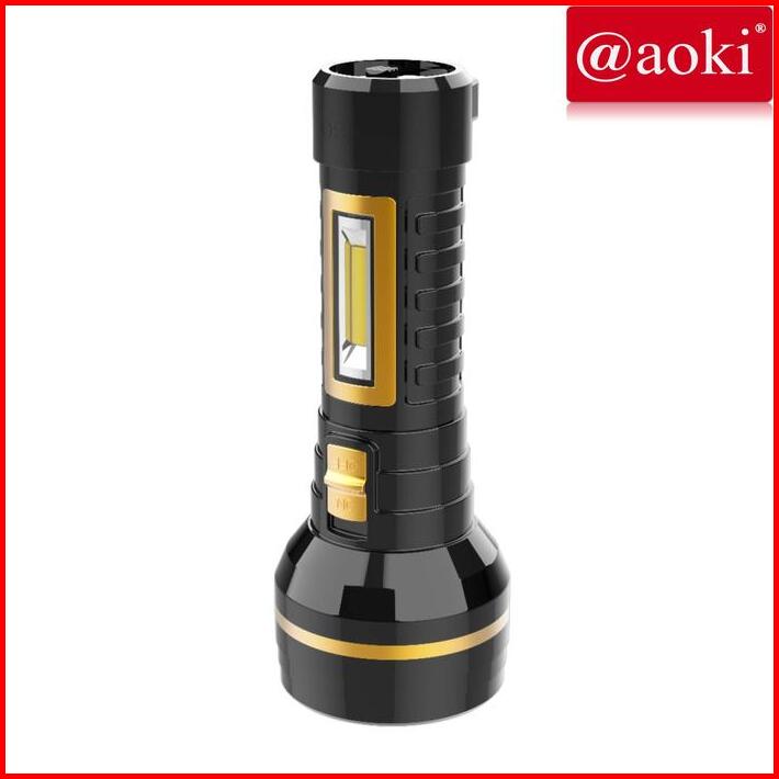 Aoki Senter Led Isi Ulang 2-in-1 17cm Led 8w Dengan Lampu Samping Darurat Lampu Cob Smd Senter