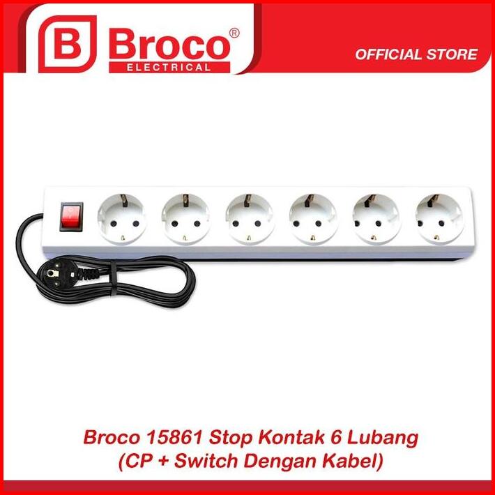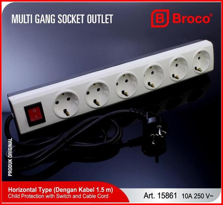 Broco Stop Kontak 6 Lubang Dengan Pengaman Child Protection Switch Kabel 15861