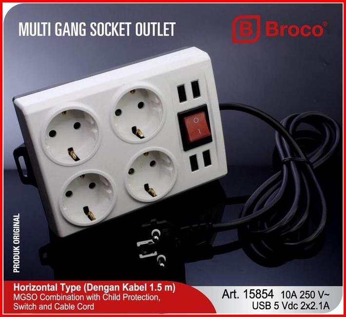 Broco Stop Kontak 4 Lubang Dengan Pengaman Child Protection 4 Colokan Usb Switch Kabel 15854