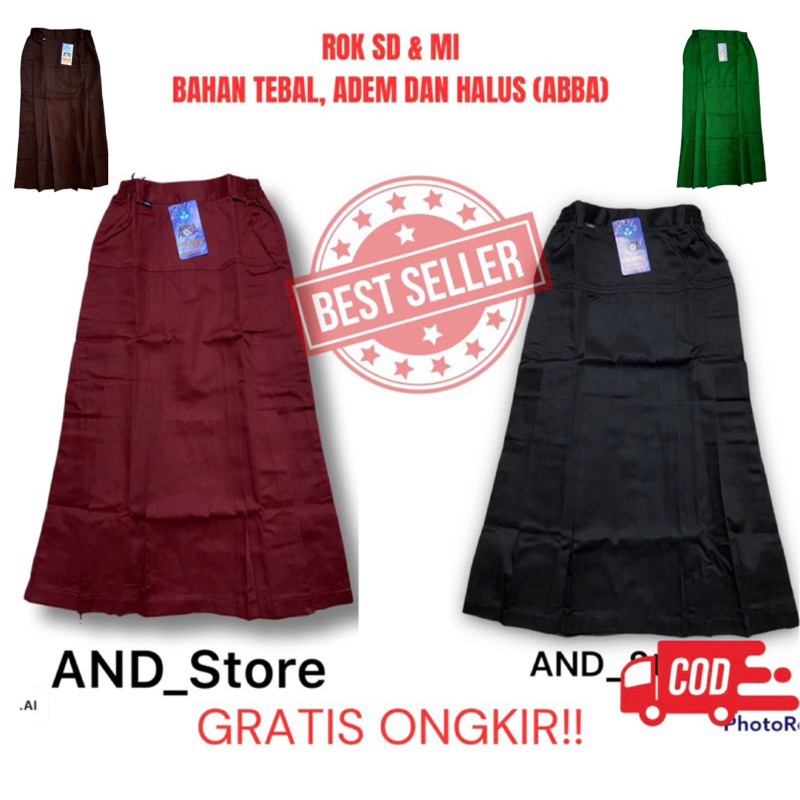 Seragam Sekolah ABBA - Rok Panjang SD/MI Turun Pinggang (Turping) Ploi 4 Warna Merah, Coklat pramuka dan Hitam