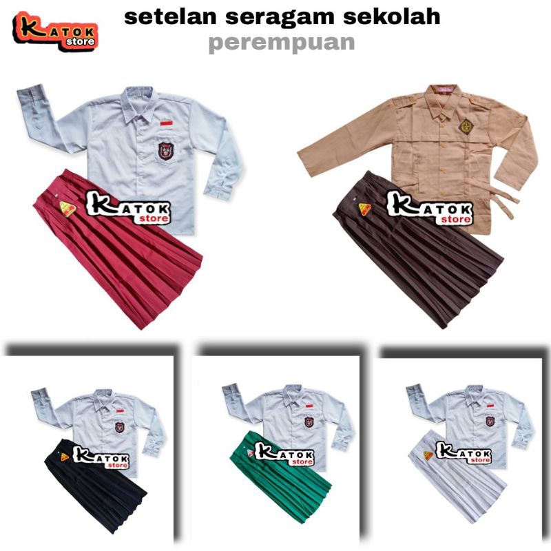 Setelan Seragam Sekolah SD Perempuan Baju Panjang Rok Panjang