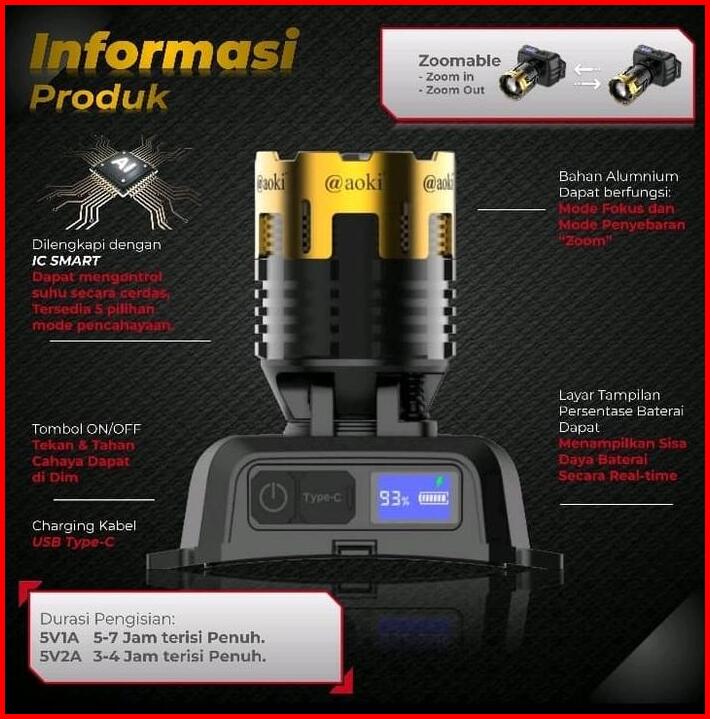 Senter Kepala Aoki Ak-3655a 90w Pro 2000 Lumen