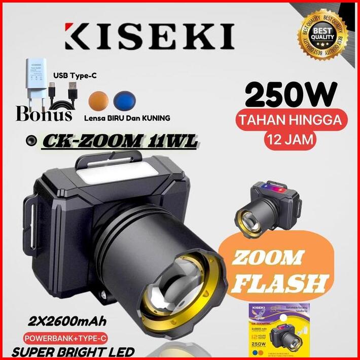 Senter Kepala Led Kiseki Ck-zoom 11wl 250watt Baterai 5200mah