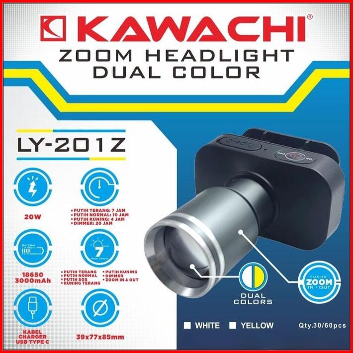 Senter Kepala Kawachi Ly-201z Dua Cahaya Putih Dan Kuning