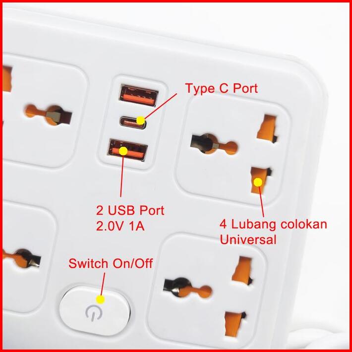 Stop Kontak Kabel Usb Mikotek 1.5m Colokan Listrik Serbaguna 4 6 Lubang Original
